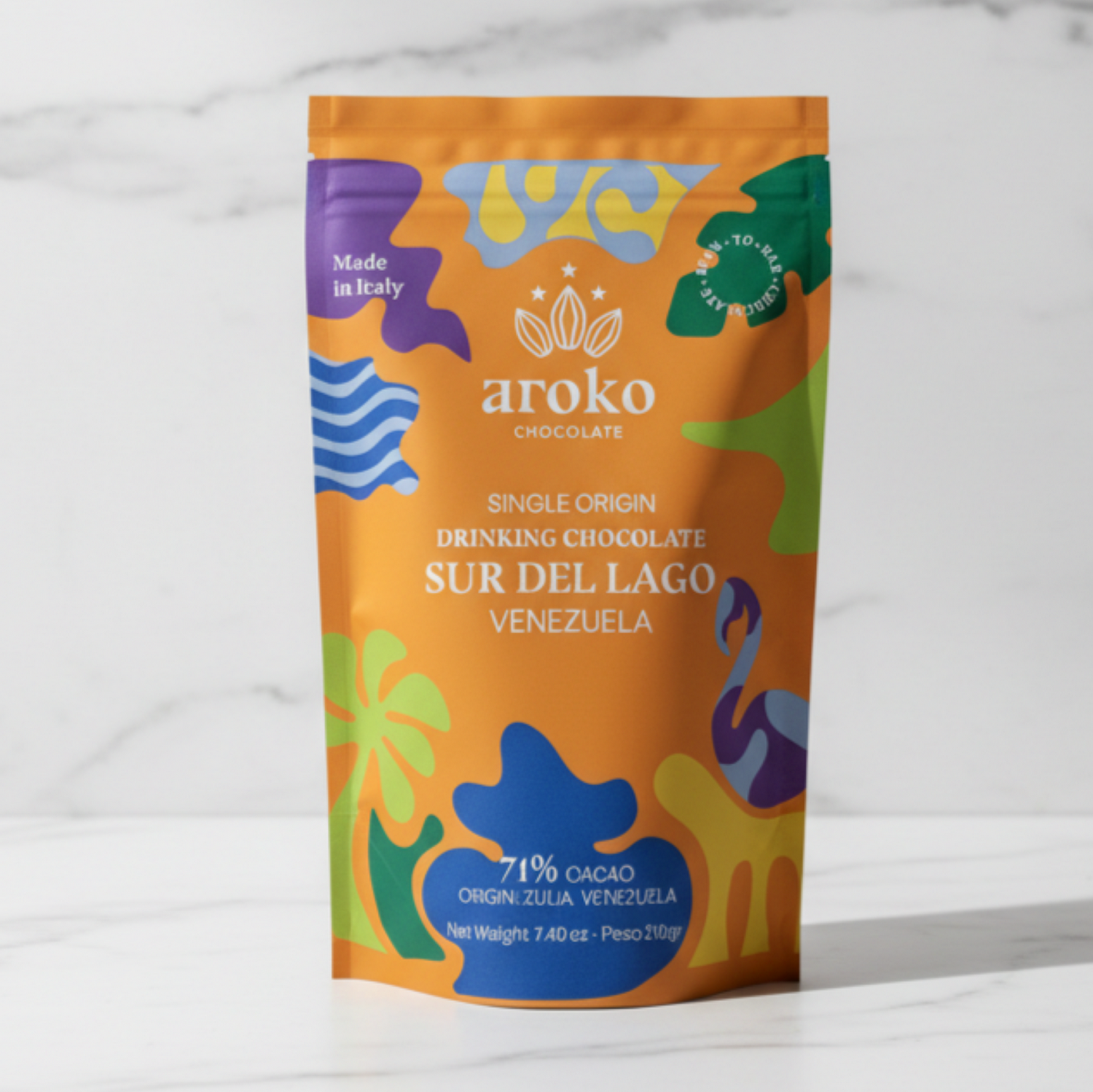 Drinking Chocolate Sur del Lago 8 porzioni generose per busta Il nostro classico 71% Sur del Lago, solo zucchero di canna. Sapore equilibrato di noci, tabacco e cacao profondo. Consigliato con latte di avena per una cremosità perfetta, ma ottimo con qualsiasi latte o acqua. Senza additivi.